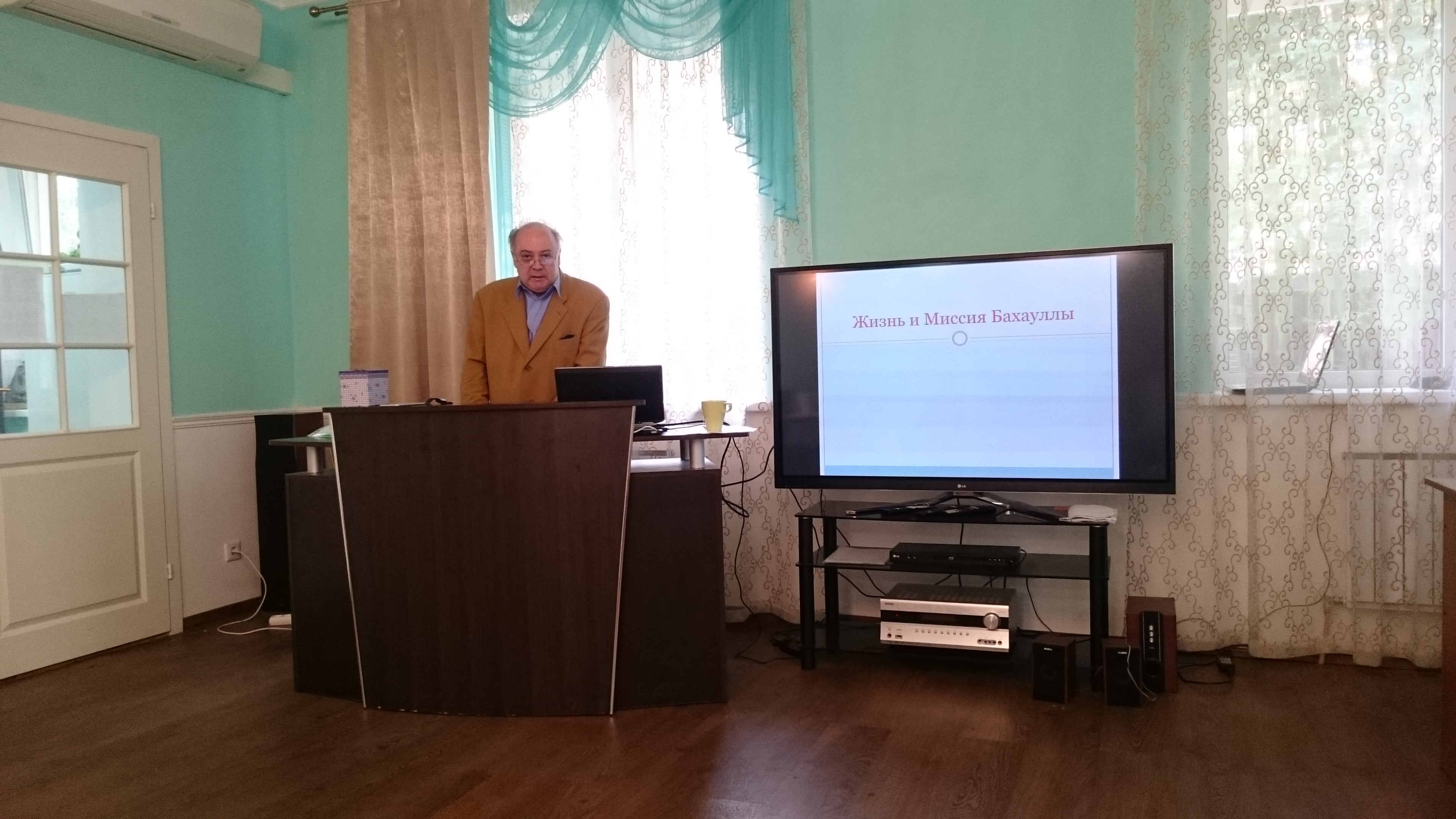 С рассказом о жизни Бахауллы выступил Юлий Аркадьевич Иоаннесиан, выдающийся востоковед и специалист по персидскому языку. Это была поистине академическая лекция, народ был просто в восторге от такого обилия уникального исторического материала.